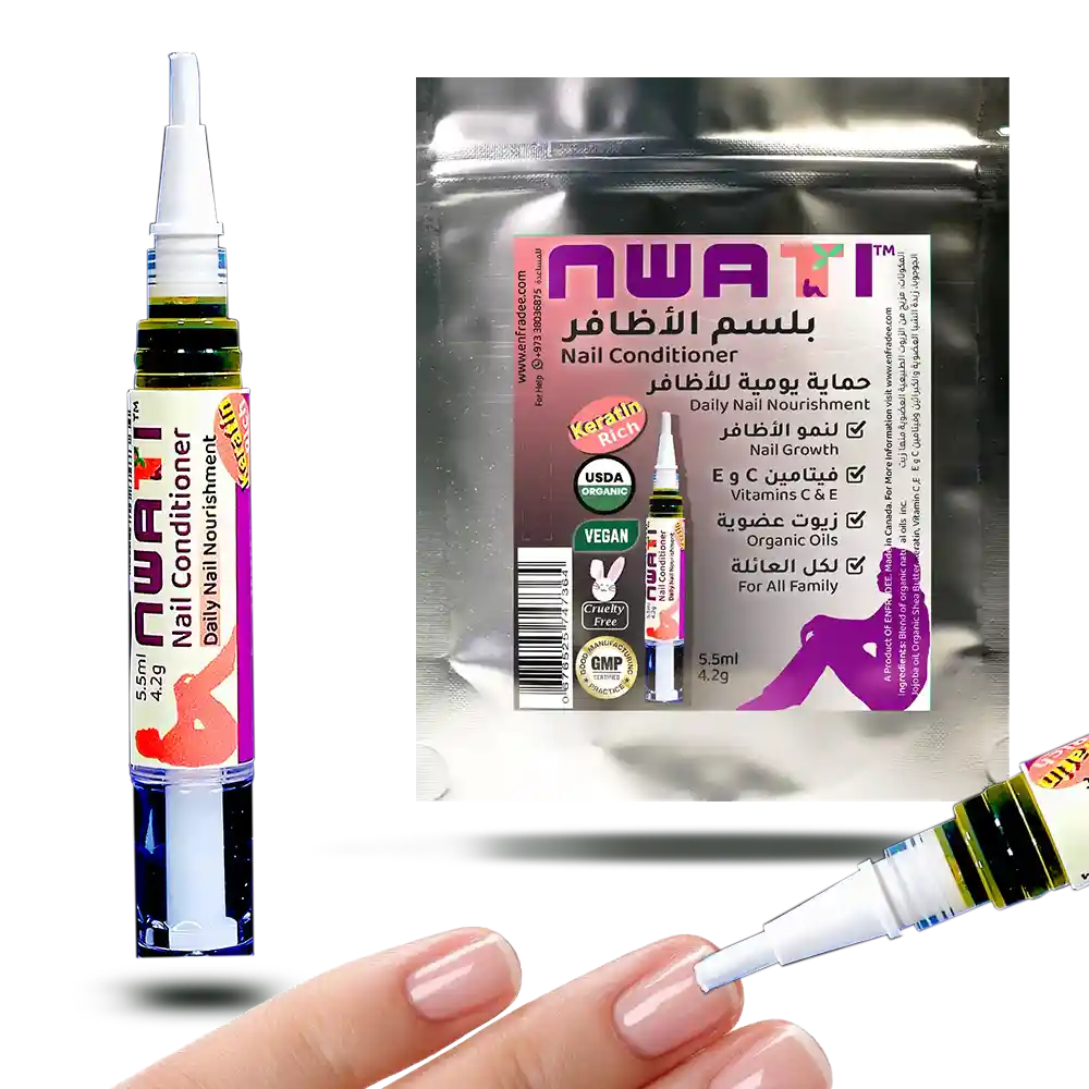 An exotic blend of organic oils with vitamin E and keratin. Repair damaged nails and help with nail growth