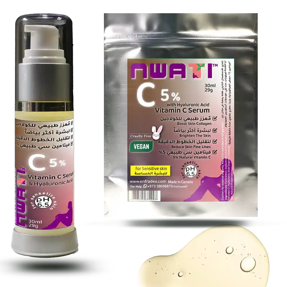 نوع طبيعي ولطيف من فيتامين C بنسبة 5% لبشرة الوجه الحساسة وغني بحمض الهيالورونيك